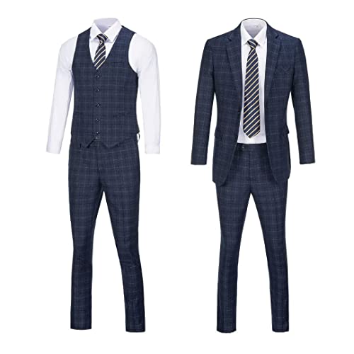 Mens Suits 3 Piece Plaid Suit Formal Casual Suits Slim Fit, Vintage Tweed Suits for Men Jacket Vest Pants with Tie 3