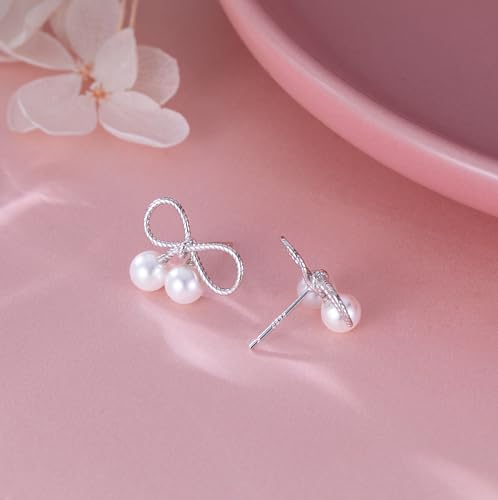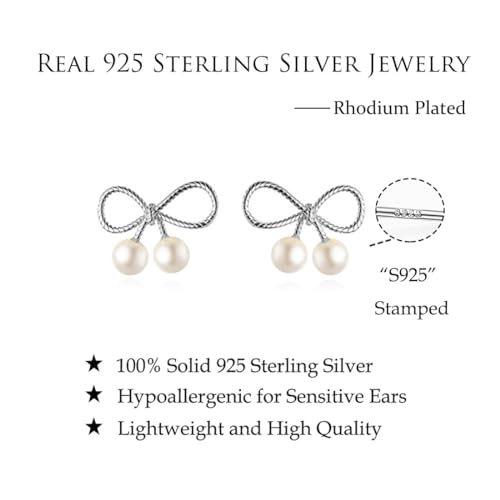 Reffeer Solid 925 Sterling Silver Bow Stud Earrings Ribbon for Women Teen Girls Bowknot Stud Earrings Pearls 4