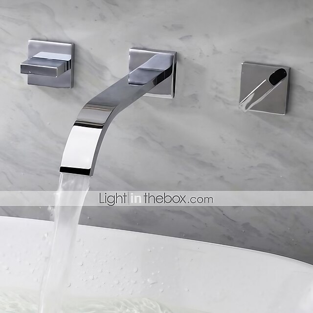 More information about Wall Mounted Bathroom Sink FaucetSilvery Widespread Chrome Two Handles Three Holes Bath Taps with Hot and Cold Water