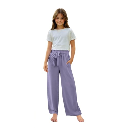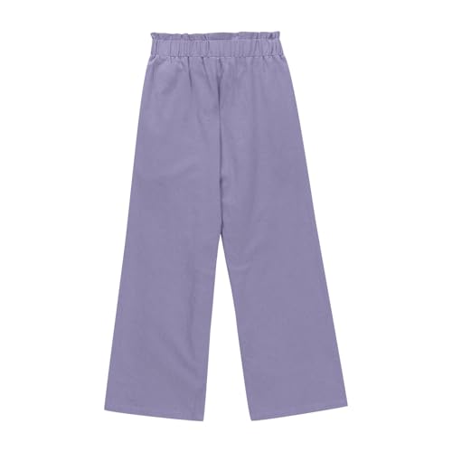 Girls Comfy Linen Pants Casual Summer Belted Elastic Waist Loose Soft Workout Trousers for Kids 4-14 Years 7