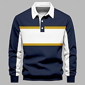 More information about Men's Stripes Rugby Polo Long Sleeve Polo Shirts Collared Shirts Casual Outdoor Athleisure 3D Print Spring Fall Winter Blue