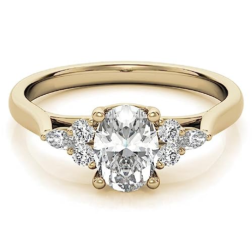 10K Solid Yellow Gold Handmade Engagement Ring, 2.00 CT Oval Cut Moissanite Solitaire Ring Diamond Wedding Ring for Women/Her, Anniversary Precious Gift, VVS1 Colorless 5