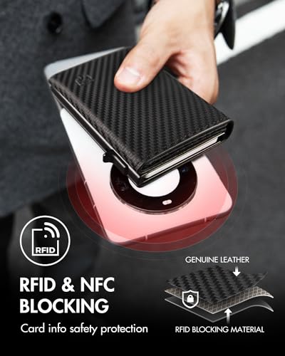 • 【Magnetic Closure & Pop Up Wallet】: Our smart wallet combines powerful magnetic closure with an advanced pop-up card mechanism. Effortlessly close your wallet with a satisfying snap thanks to the strong magnetic seal. Meanwhile, a gentle press instantly elevates your most-used cards for quick and easy access, say goodbye to fumbling through your old wallet at checkout moments.