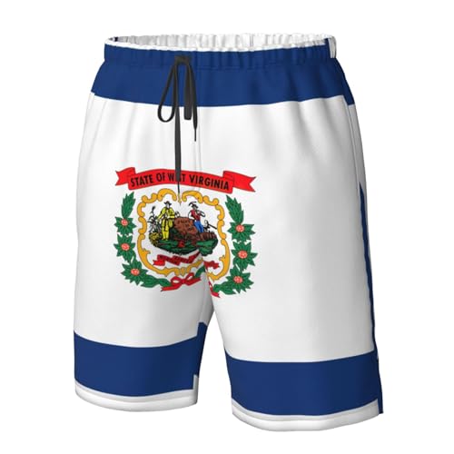 HOT ! West Virginia State Flag Print Men's Quick Dry Swim Board Shorts, Summer Beach Trunks Bathing Suits with Pocket