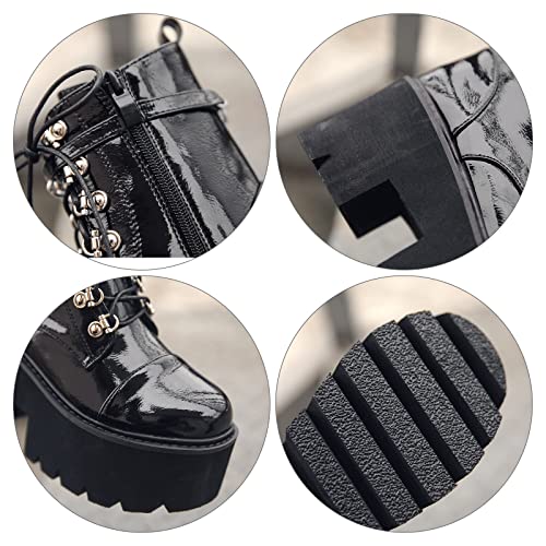 Black Platform Boots for Women with Fashion Chain Chunky Heeled Studded Combat Boots Lace Up and Zipper Goth emo Shoes Cosplay Halloween Ankle Booties for Daughter