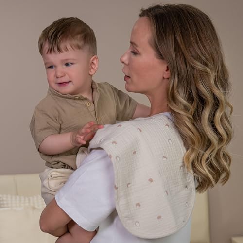 • Large and Absorbent Burp Cloths: Measuring 20"x9", these large muslin burp cloths offer maximum coverage and protection for parents from messes. The breathable and highly absorbent material of neutral burping cloths for babies quickly soaks up spit-ups and spills, keeping you and your baby clean and dry.