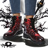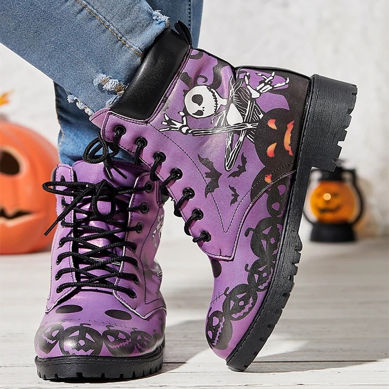 More information about Women's Halloween Skull Print Combat Boots - Gothic Style Lace-Up Ankle Boots for Spooky Season