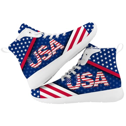 American Flag Shoes for Men Women Red White Blue High Top Sneakers Casual Shoes Gifts for Him Her 6