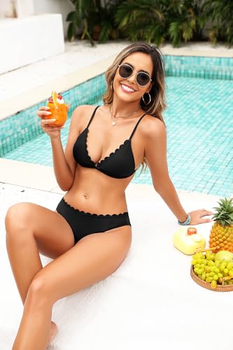 More information about Aqua Eve Women Ribbed Bikini Set - Triangle Two Piece Swimsuit Scalloped Bikini 2025 Low Rise Bathing Suit