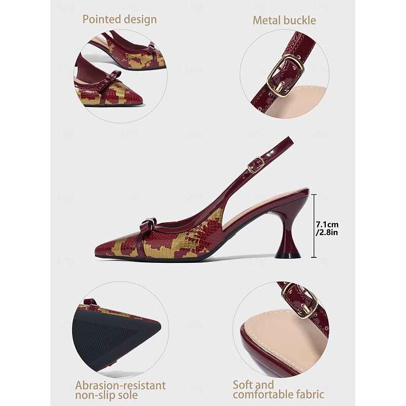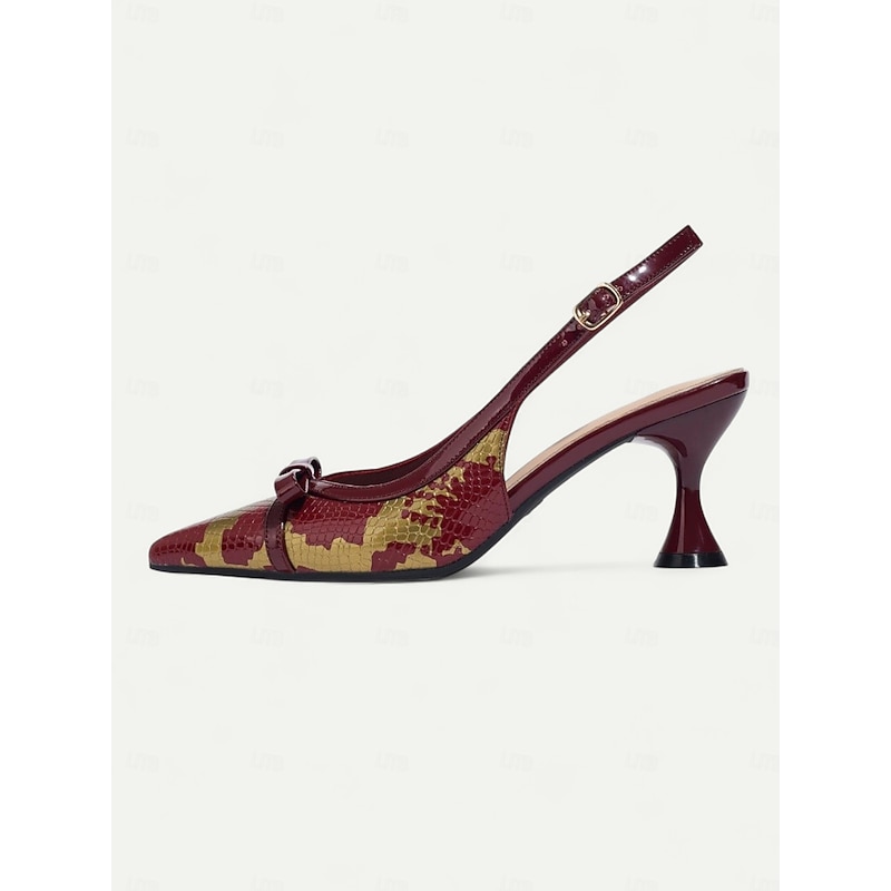 Women's Vintage 1950s Pointed-Toe Slingback Heels with Bow and Snake Pattern – Elegant Retro Pumps for Parties and Evening Event 10