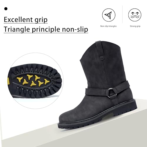 Men's Motorcycle Leather Boots - Black Waterproof Low Heeled Riding, Bicycle, Wide Calf Cowboy, and Hiking Boots 4