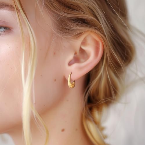 • [ONE PAIR COUNTLESS LOOKS] Designed with minimalist style, these small earrings for women are effortlessly versatile. Whether you're wearing a hoodie, blazer, or dress, the gold earrings blend in greatly. From workdays to weekends, this go-to gold plated hoop earrings saves you from daily styling dilemmas
