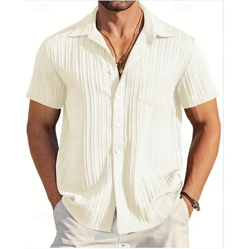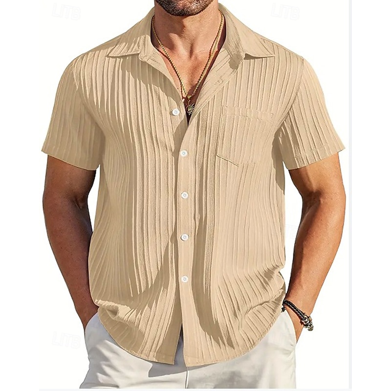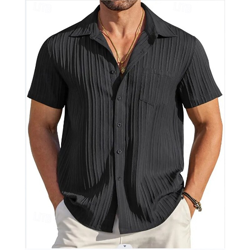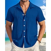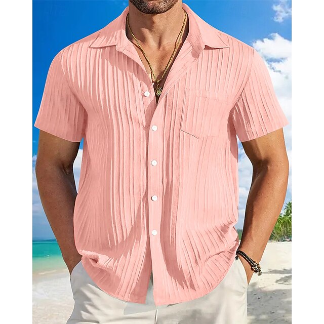 More information about Men's Shirt Summer Shirt Casual Shirt Beach Shirt Button Up Shirt Light Pink Black White Red Royal Blue Short Sleeve Plain Lapel Vacation Hawaiian Clothing Apparel Polyester Fashion Casual Comfortable
