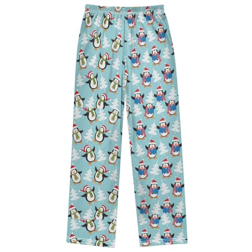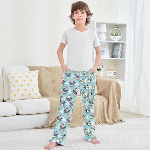 Boy's Pj Pants Happy Christmas Penguin Blue Lounge Bottoms Elastic Kids Sweatpants Joggers with Pockets Size 6-14 5