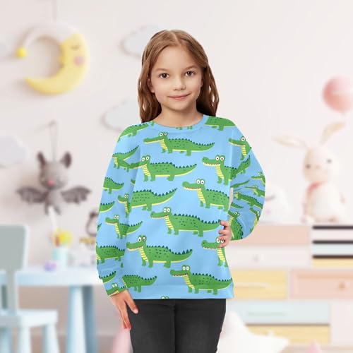 JUNZAN Green Crocodiles Blue Kids Girls Hooded Sweatshirt Fleece Tops Clothing Shirts Party 4T 6