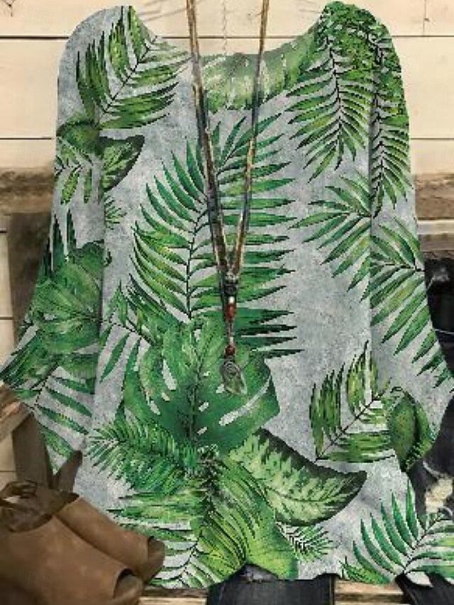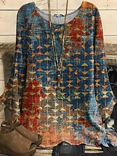 More information about Women's Shirt Floral Geometric Vintage Daily 3/4 Length Sleeve Crew Neck Regular Tops Daily Holiday Print Navy Blue Blue Purple Green Summer