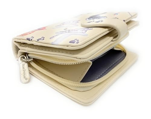 Shag Wear Playful Cats Small Wallet for Women and Teen Girls Vegan Faux Leather Beige 4.5" 6