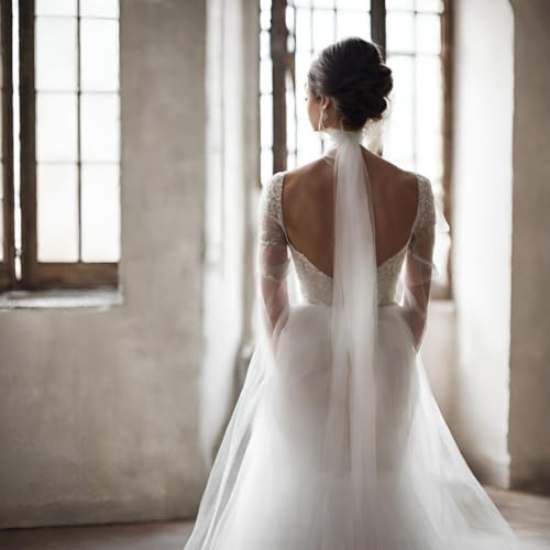 More information about Thin Ivory Tulle Bridal Scarf, Long Silk Wedding Necktie, English Net Neckerchief, Draped Wedding Wrap, Soft Bridal Bow Cape