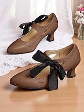 Women's Edwardian Vintage Gatsby Ribbon Heels-1900s Style Purple Mary Jane Shoes with Black Bow, Cutout Design and Curved Mid Heels for Historical Cosplay, Retro Tea Parties and Costume Events 19