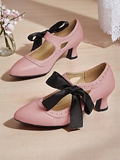 More information about Women's Edwardian Vintage Gatsby Ribbon Heels-1900s Style Purple Mary Jane Shoes with Black Bow, Cutout Design and Curved Mid Heels for Historical Cosplay, Retro Tea Parties and Costume Events
