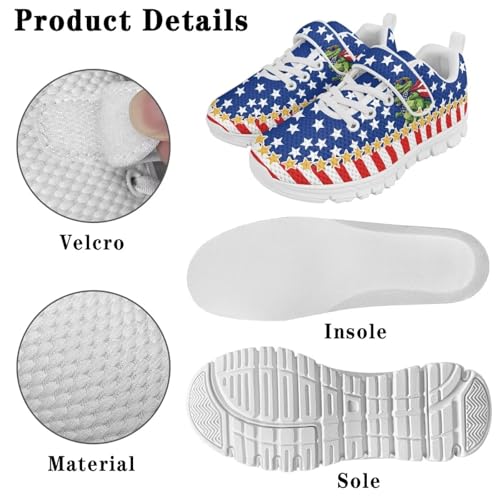 Kids Shoes, Boys Girls Sneakers Lightweight Athletic Walking/Running Tennis Shoes(Little Kid/Big Kid) America Flag Dinosaur Pattern White Sole 4