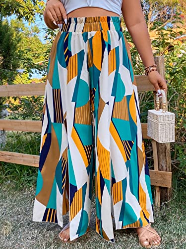 WDIRARA Women's Plus Size Printed Drawstring Waist Split Side Wide Leg Pants 6