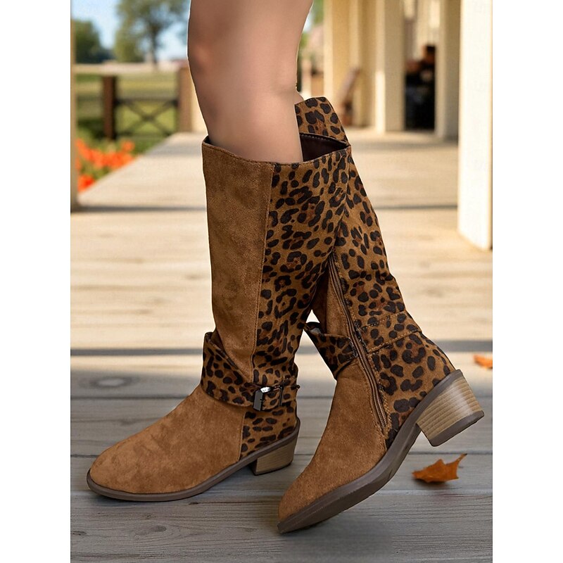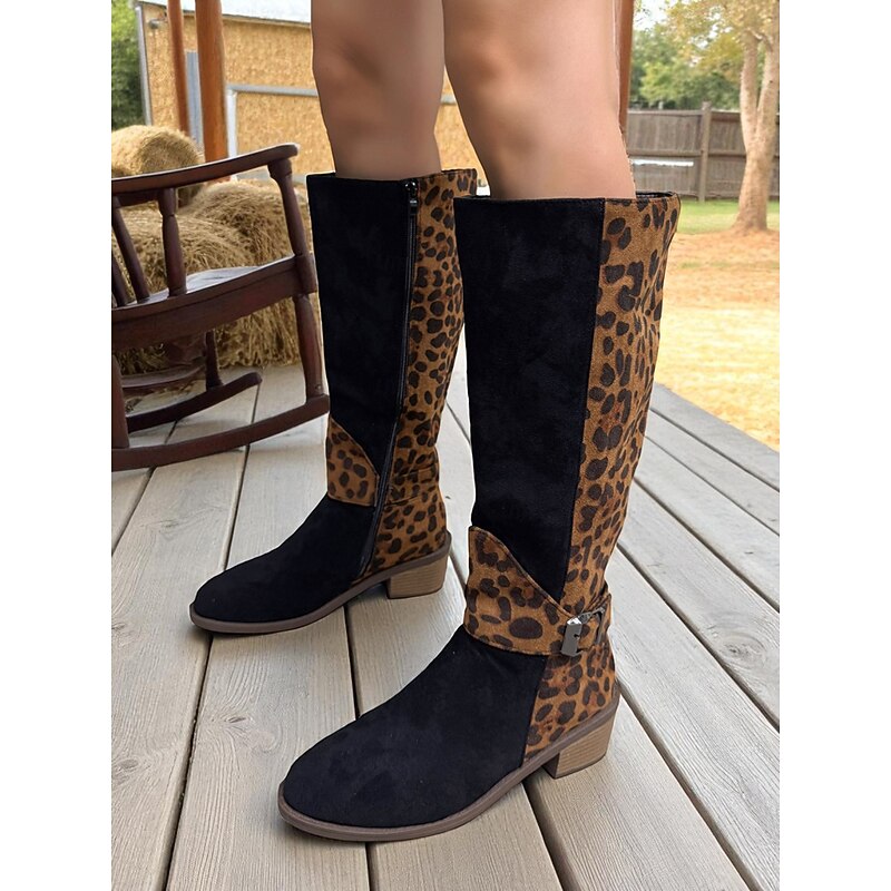 $42.99 - Women's Leopard Print Knee High Boots – Chic Faux Suede Riding Boots for Weekend Getaways and Casual Wear 2025. Shop for cheap Fashion Boots online? Buy at lightinthebox.com on sale today!