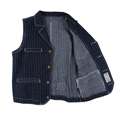 More information about Men Winter Fall Striped Denim Vest Casual Suit Collar Multi Pocket Patchwork Waistcoats