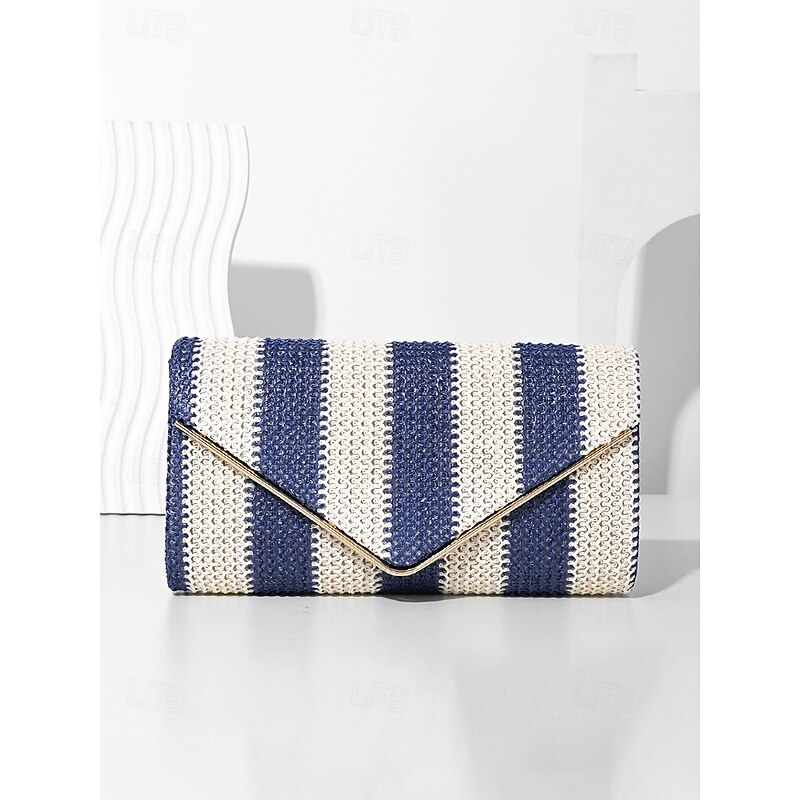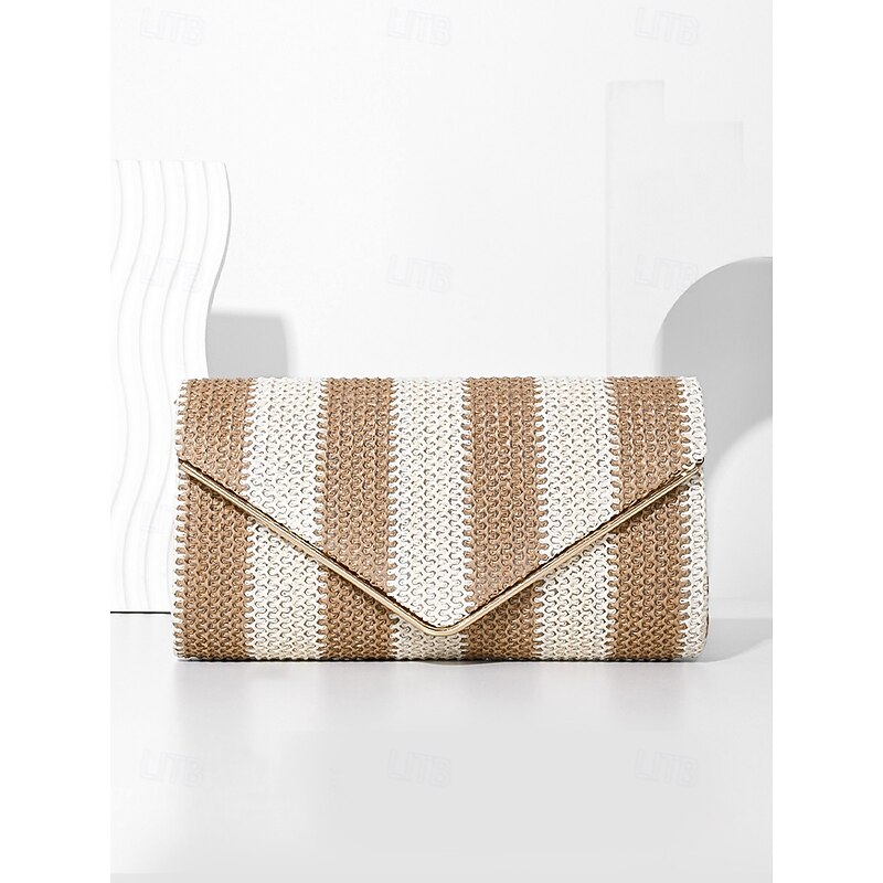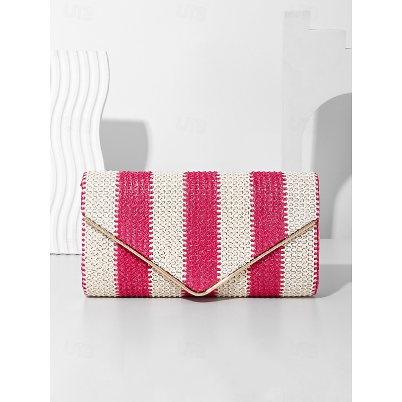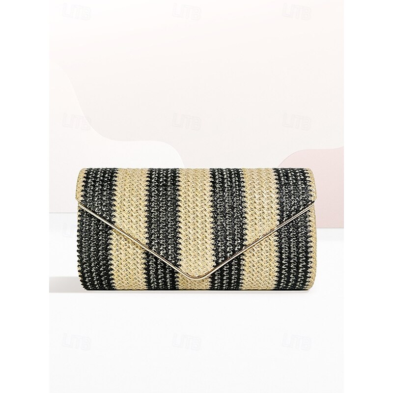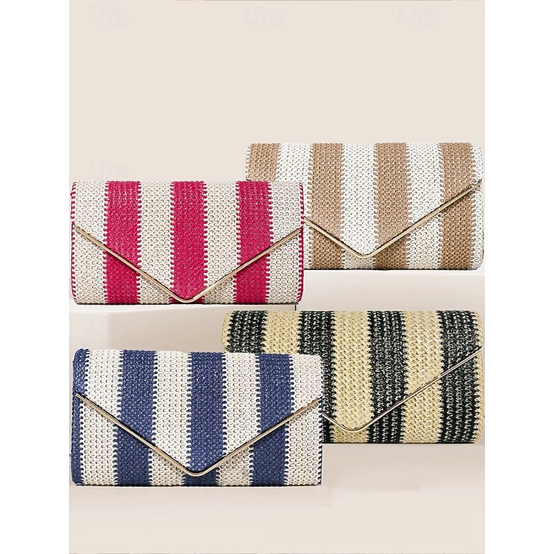 HOT ! Women's Striped Woven Envelope Clutch - With chain, can be carried on one shoulder or crossbody, fashionable and versatile, suitable for beach parties and daily use Black Red Khaki