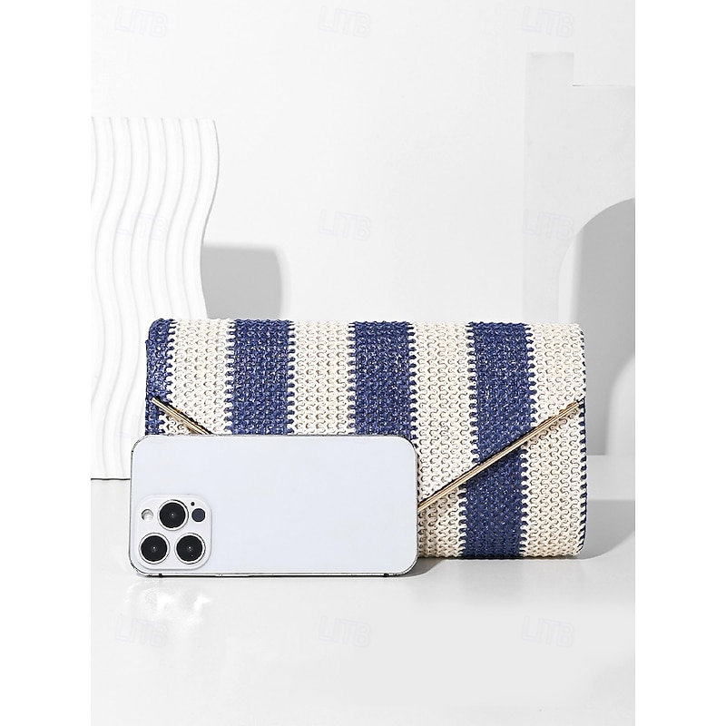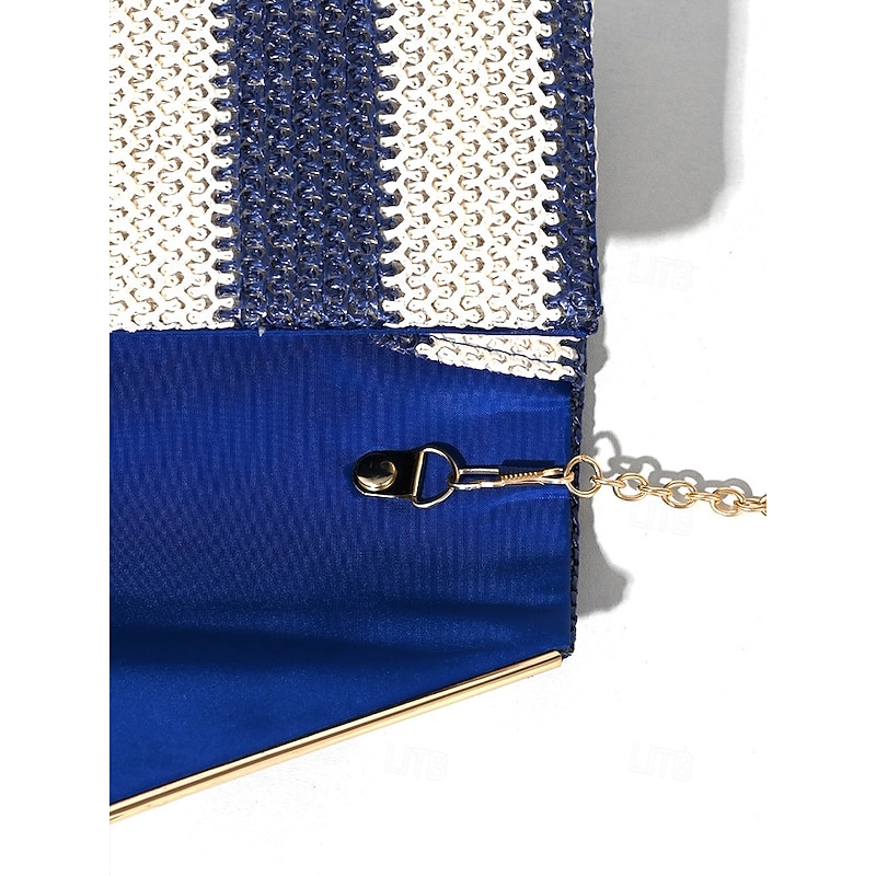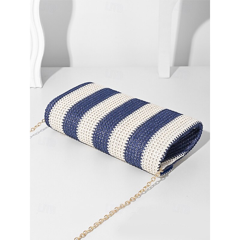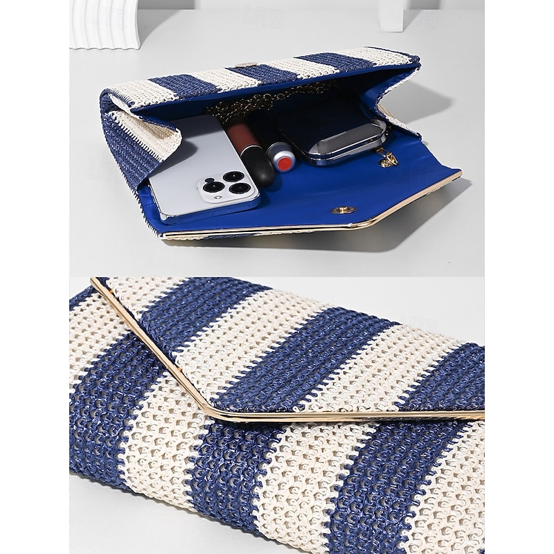 Women's Striped Woven Envelope Clutch - With chain, can be carried on one shoulder or crossbody, fashionable and versatile, suitable for beach parties and daily use Black Red Khaki 11