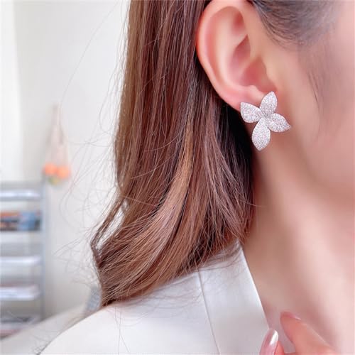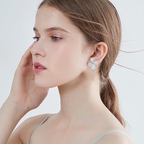 • Size & Details: CZ Diamond Flower Stud Earrings Size 2cm*2.6cm, Fashion Luxury Pave Rhinestone Blossom Earring, Dainty Wedding Prom Party Jewelry.