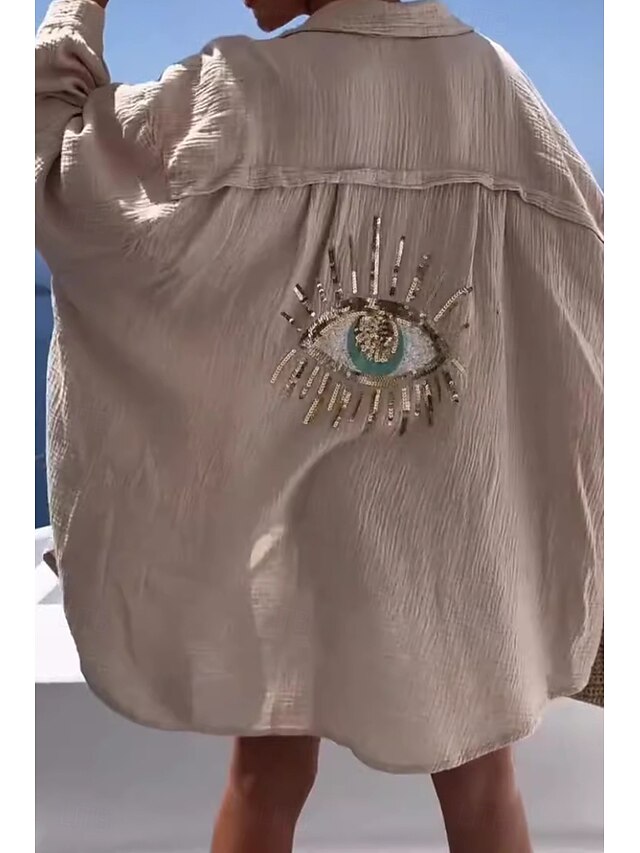 More information about Women's Shirt Cotton Linen Shirts Linen Shirt Button Up Flower Daily Casual Long Sleeve Shirt Collar Regular Tops Daily Holiday Going out Buttons Black White Apricot Spring