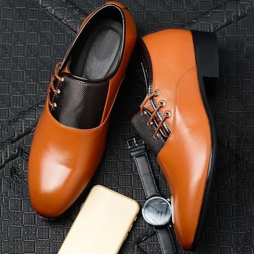 Outer material: Polyurethane (PU)Closure type: Lace-UpCrafted with a striking two-tone finish, a sleek pointed-toe silhouette, and distinguished gold eyelets, these oxfords razor-sharp profile and lustrous leather make them the definitive choice for boardrooms, black-tie affairs, and evenings where presence is everything.Carefully selected high-quality leather: Carefully selected high-quality leather is used to make it smooth to the touch, delicate texture, clear texture, textured and flexible.Metal accessories: Made of metal and waxed shoelaces to decorate beautifully, generous, stylish business and casual.Comfortable and breathable lining: The texture is delicate, soft, and breathable, with good breathability, which greatly improves the comfort of wearing the soles of the feet.Non-slip rubber outsole: The sole is made of non-slip rubber outsole, which is wear-resistant, cushioning, and has a unique texture and strong grip. Perfect for everyday use. High quality materials and excellent craftsmanship ensure long-lasting durability.