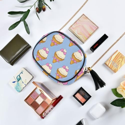 ALAZA Women's Blue Background Bowtie Ice Cream Pattern PU Leather Crossbody Bag Shoulder Purse with Tassel 1