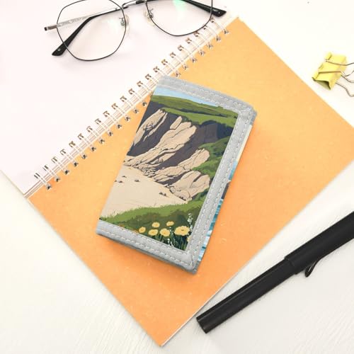 Coastal Seascap Eart Durable Nylon Fabric Wallet for Boys and Girls - Multi-Functional with 2 Clear Pockets, Zipper Coin Compartment, 3 Card Slots & Keyring 1