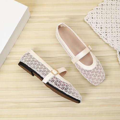 Womens Mary Janes Mesh Flats Shoes relaxing Buckle Strap Close Square Toe Ballet Flats Comfy Casual Office Fishnet Ballerina Shoes