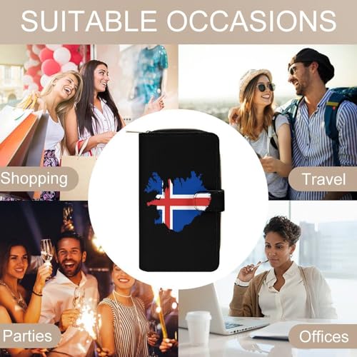Flag Map of Iceland Fashion Women's Wallet RFID Blocking Bifold Clutch Purse Compact Card Holder 19.7x11x3.5cm 4