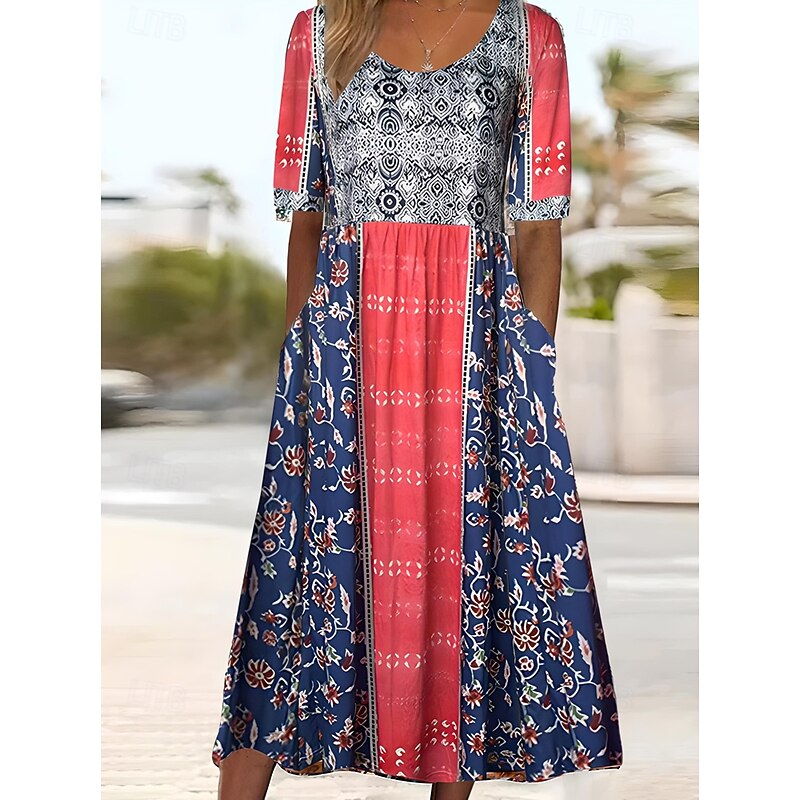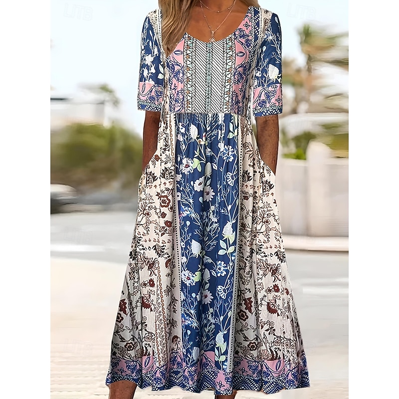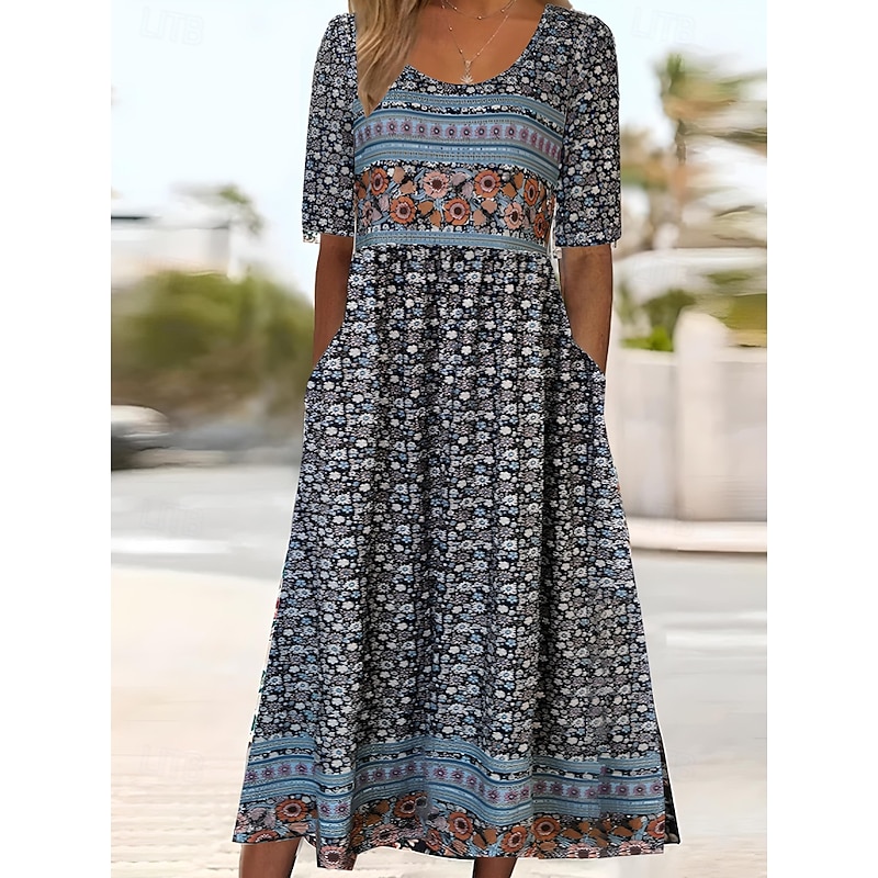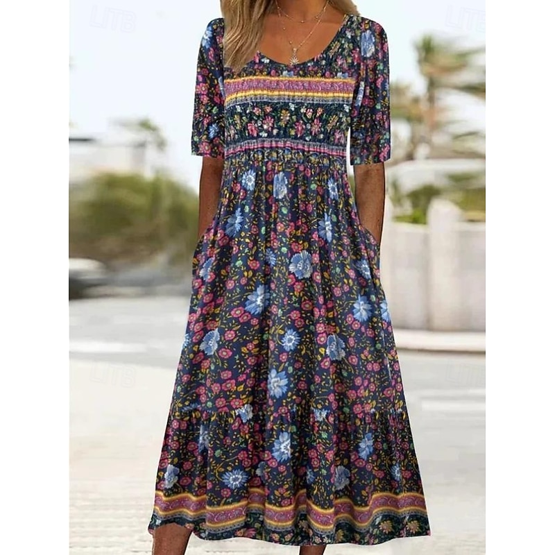 More information about Women's Maxi Dress Casual Dress Swing Dress A Line Dress Boho Dress Casual Daily Fall Dress Regular Fit Floral Short Sleeve V Neck Black Red Navy Blue Royal Blue Spring Fall