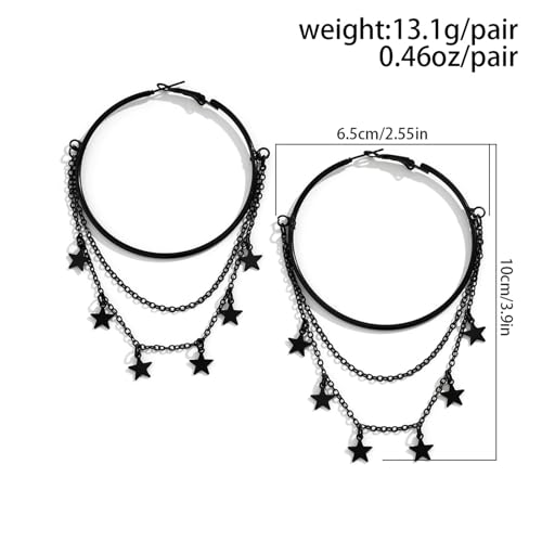 Gothic Black Hoop Earrings,Vintage Star/Circle Earrings Punk Style Dark Chain Tasell Dangle Earrings Hiphop Rock Earrings Halloween Costumes Earrings Jewelry for Women