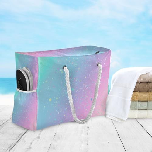 • Large & Roomy Storage Pockets: one main compartment for storage your beach towels, magazines, clothes or other accessories; Inside one PVC pocket keeps your wet towels or clothes; Another side have two net pocket inside that can hold your tiny things; There have two side pocket on the bag that can securely store your water bottle, slippers and so on.