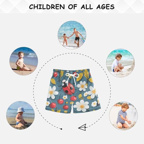 Pigsaly Boys' Swim Board Shorts Cherry Flower Ladybug Boy's Swim Trunks Kids Swimwear 4T 6