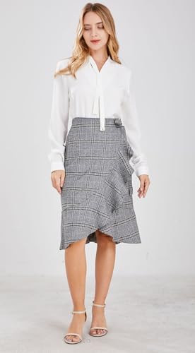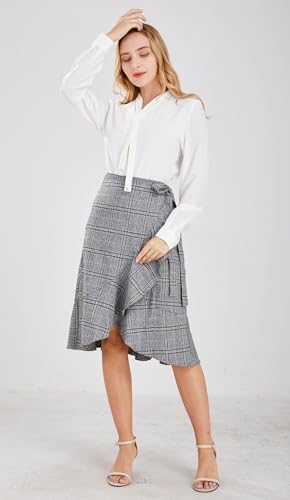chouyatou Women's Elegant Work Wear Adjustable Waist Flounce A-Line Plaid Midi Wrap Skirt 6