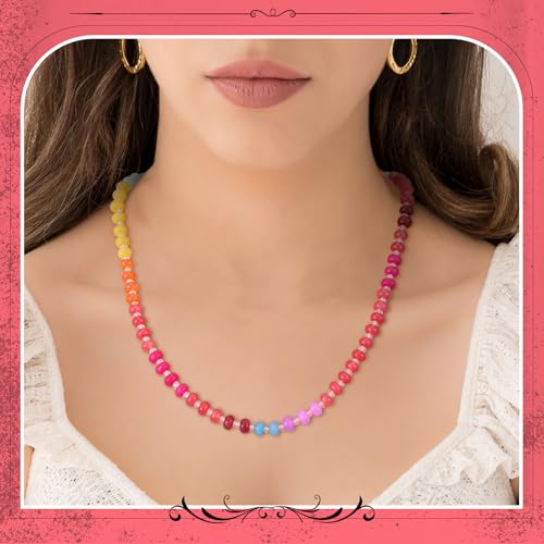 HOT ! 3 Pcs Boho Bead Chokers - Colorful Rainbow Beaded Gemstone Necklaces for Women Natural Stone Necklaces for Summer Beach Jewelry Gift