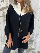 More information about Women's Winter Coat Winter Jacket Outdoor Street Daily Fall Winter Regular Coat Regular Fit Warm Breathable Comtemporary Stylish Jacket Long Sleeve Solid Color with Pockets Full Zip Black White Camel