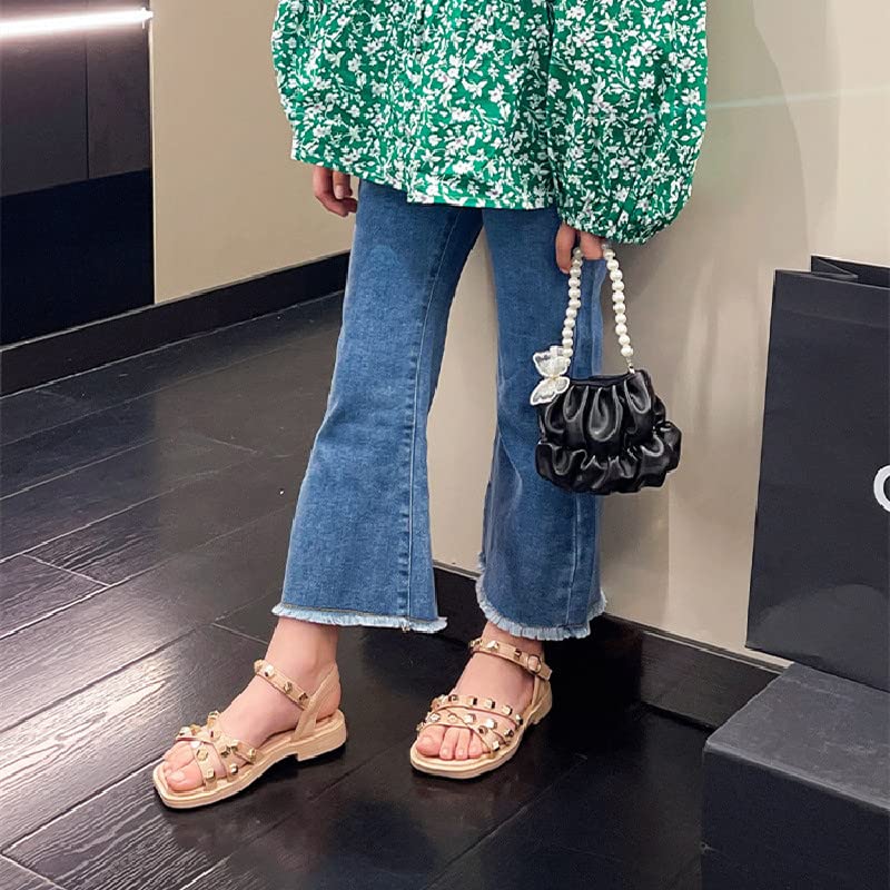 Rivets Girls Sandals Summer Vintage Beach Shoes Student Soft Soles Shoes 7