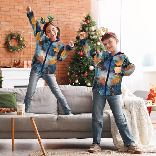 Boys Girls Fleece Jacket Dark Blue Orange Water Texture Kids Warm Hooded Outwear Coat 4