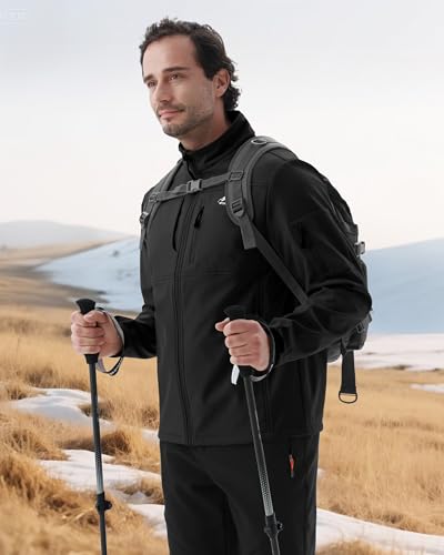 WULFUL Men's Lightweight Softshell Jacket heated Fleece Lined Windbreaker Waterproof tender Shell Outdoor