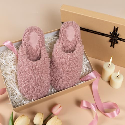 • Chic Scuff Design: Easy slip-on scuff slippers featuring a chic and cute twirl fleece design, perfect for matching any casual outfit. Ideal as a delightful gift for holidays or special occasions, adding a touch of elegance to home wear.
