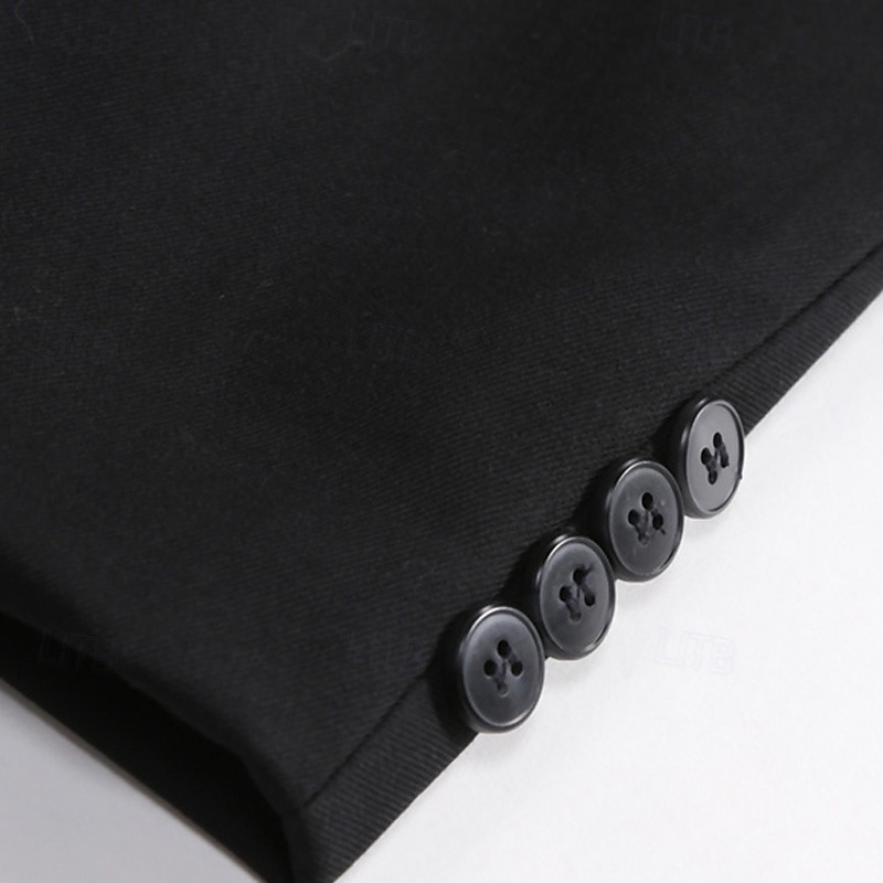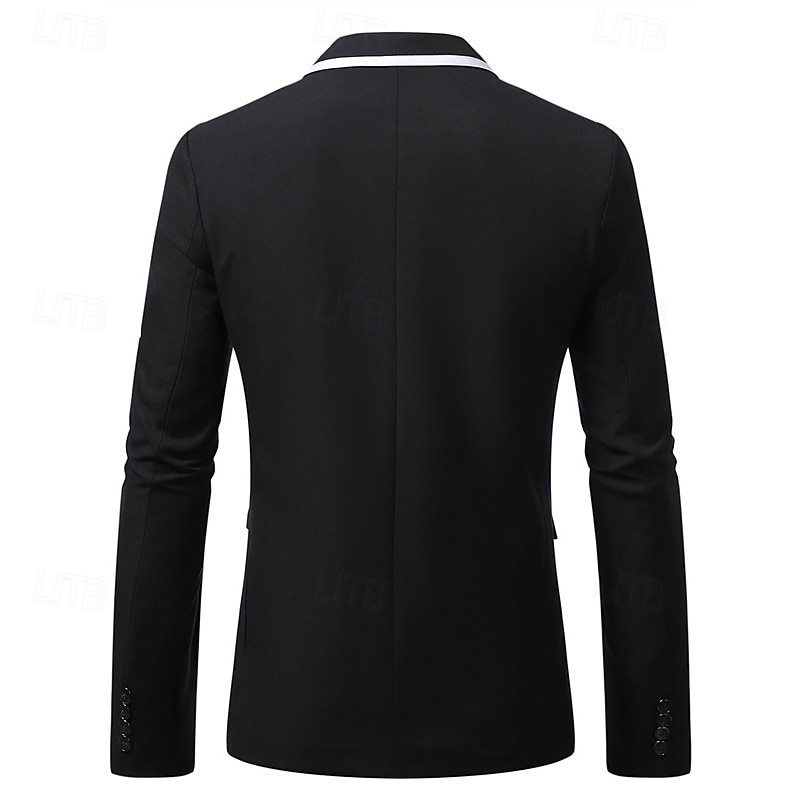 More information about Men's Graduation Blazer Business Cocktail Party Wedding Party Fashion Casual Spring & Fall Polyester Color Block Pocket Buttons Comfortable Single Breasted Blazer Black