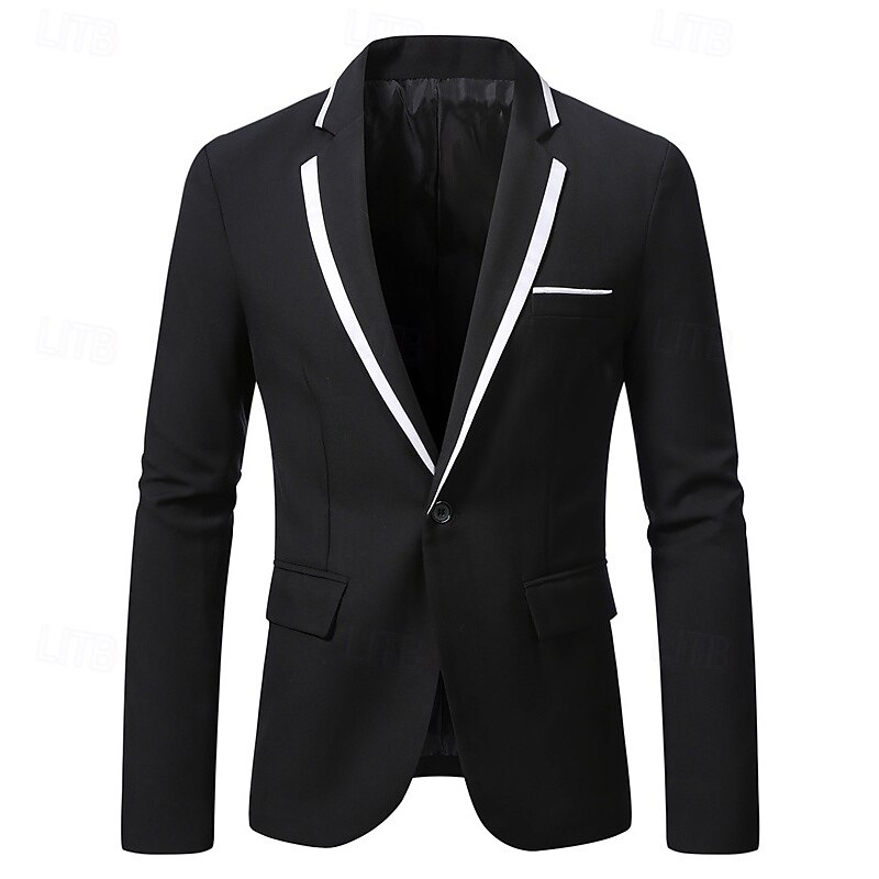 HOT ! Men's Graduation Blazer Business Cocktail Party Wedding Party Fashion Casual Spring & Fall Polyester Color Block Pocket Buttons Comfortable Single Breasted Blazer Black
